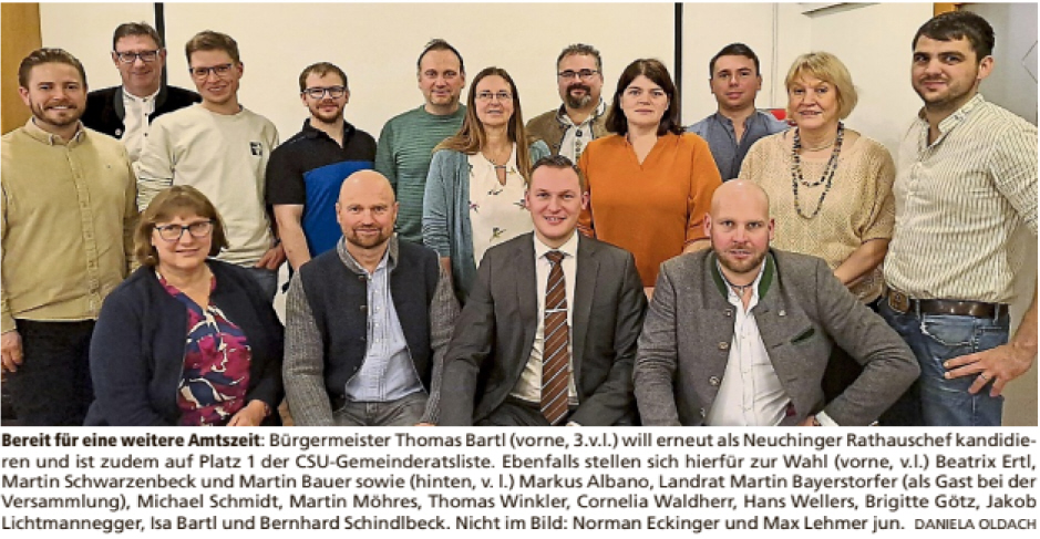 CSU Neuching stellt Bürgermeister Thomas Bartl erneut als Kandidaten auf