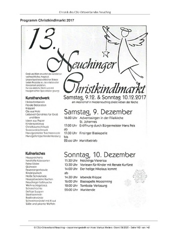 Chronik des CSU-Ortsverbandes Neuching Programm Christkindlmarkt 2017 © CSU-Ortsverband Neuching – zusammengestellt von Hans Markus Wellers -Stand 09/2020 - Seite 113 von 143