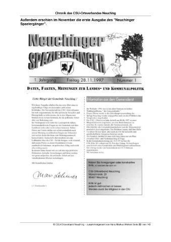Chronik des CSU-Ortsverbandes Neuching Außerdem erschien im November die erste Ausgabe des "Neuchinger Spaziergänger". © CSU-Ortsverband Neuching – zusammengestellt von Hans Markus Wellers Seite 25 von 143
