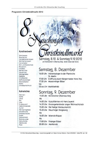 Chronik des CSU-Ortsverbandes Neuching Programm Christkindlmarkt 2012 © CSU-Ortsverband Neuching – zusammengestellt von Hans Markus Wellers -Stand 09/2020 - Seite 76 von 143